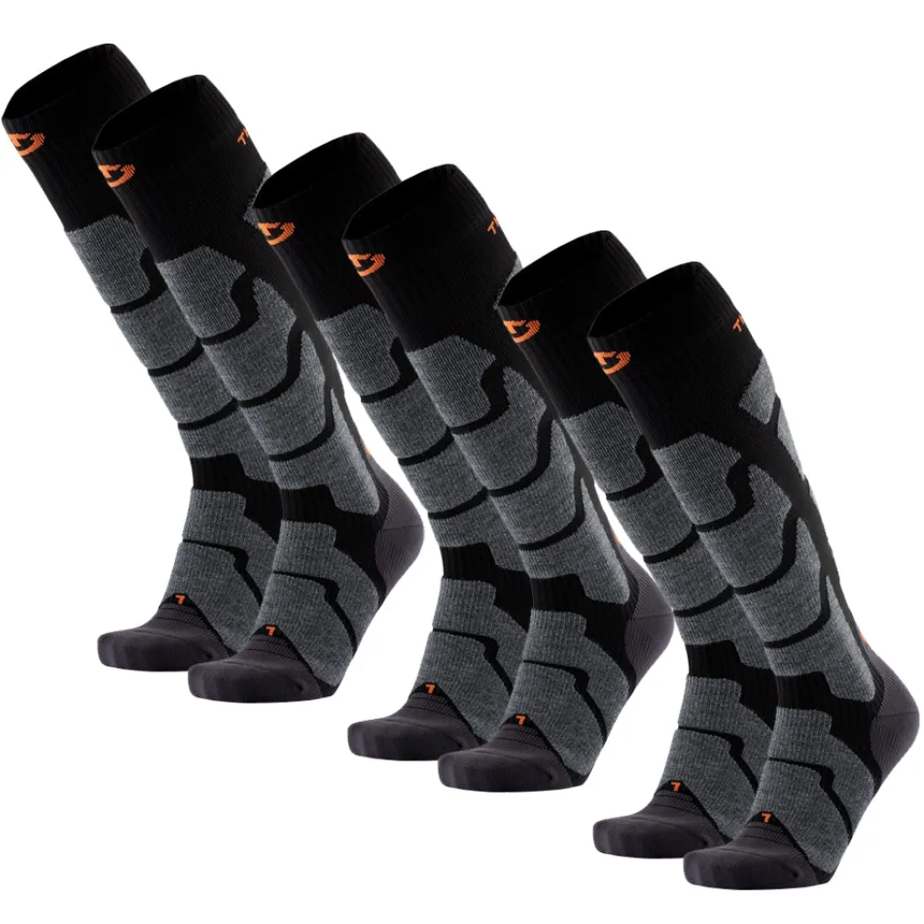Set of 3 pairs of unisex ski socks available in different sizes and various colours.